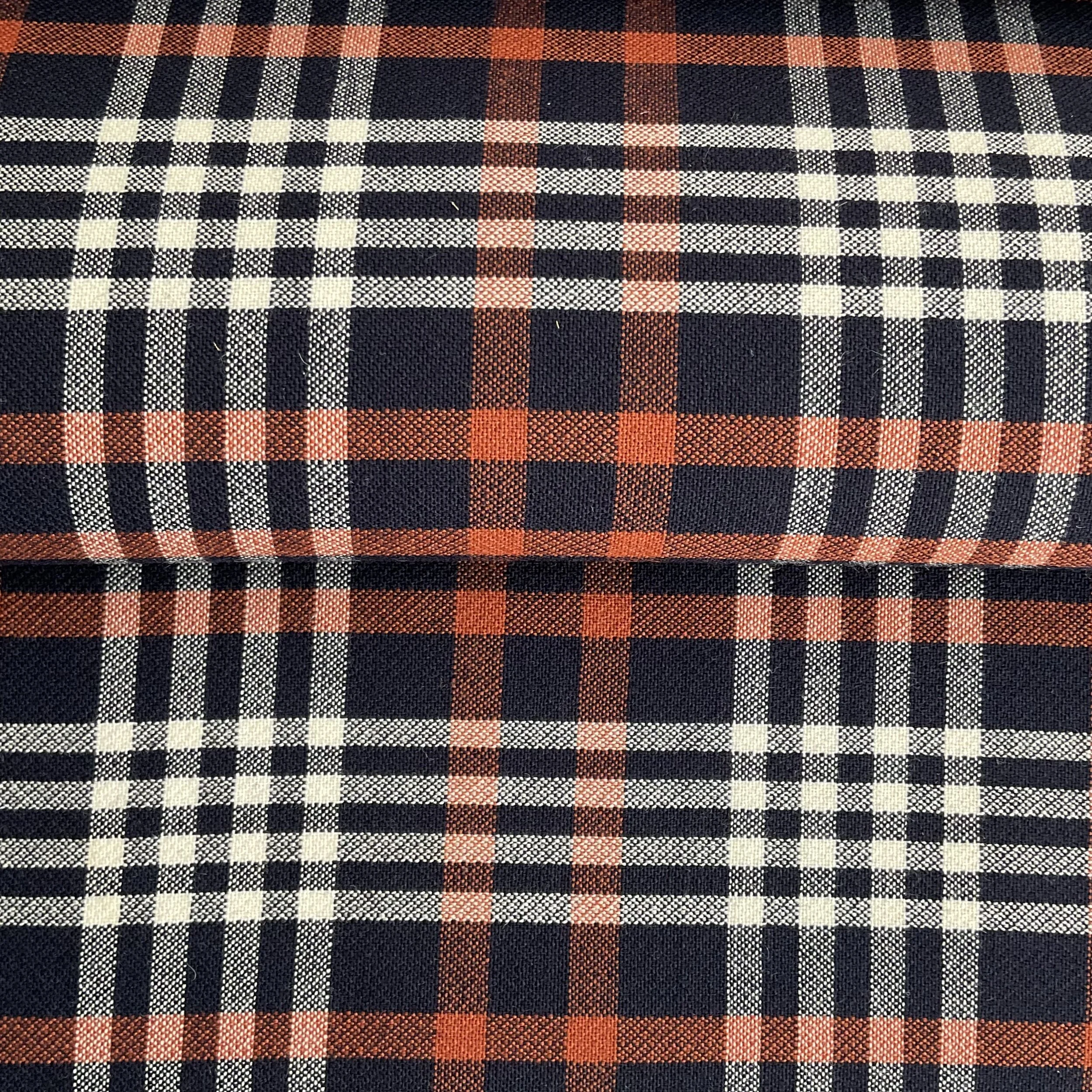 Navy/Black Check Textured Virgin Wool Blend