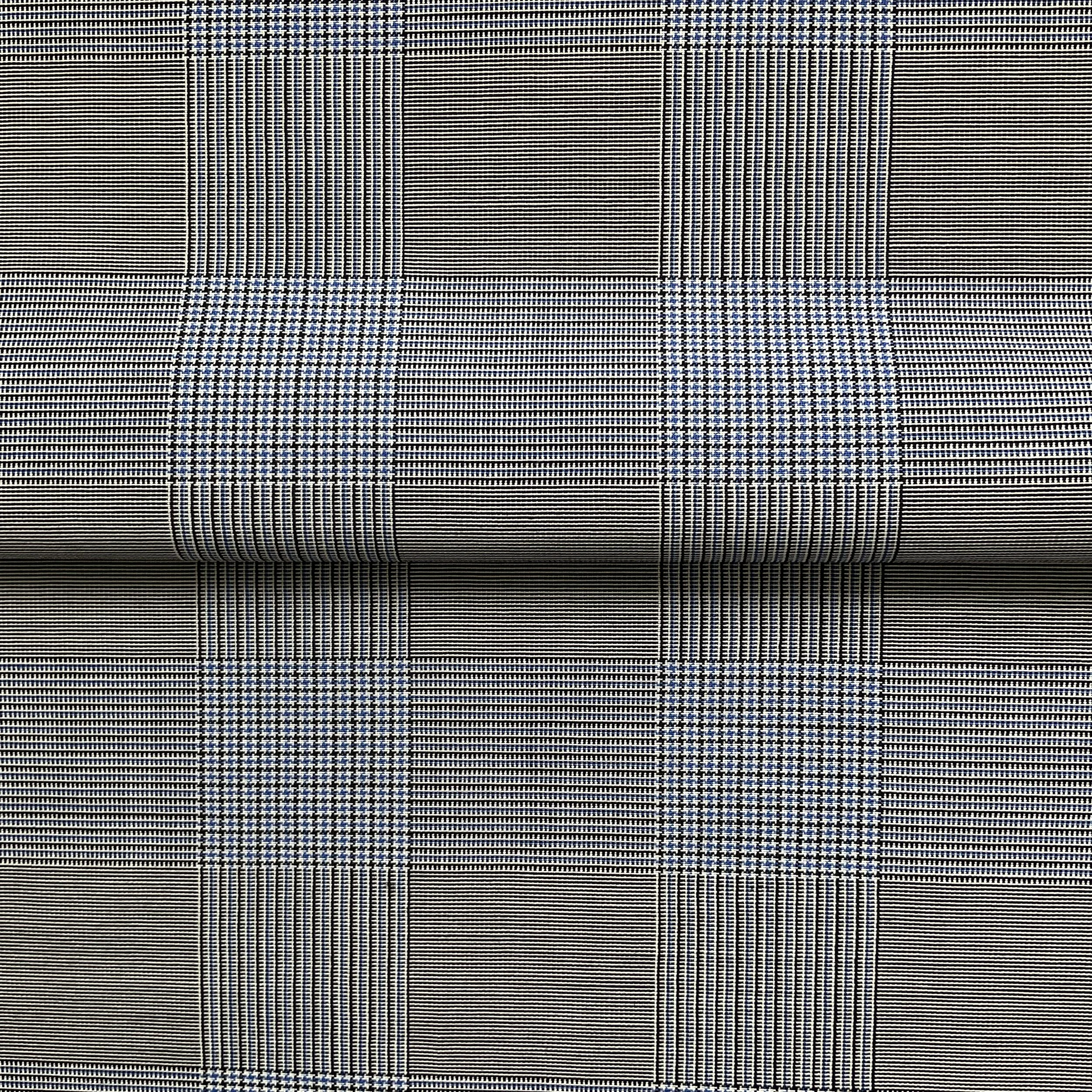 Blue/Black/Cream Check Stripe Mid-weight Wool Suiting