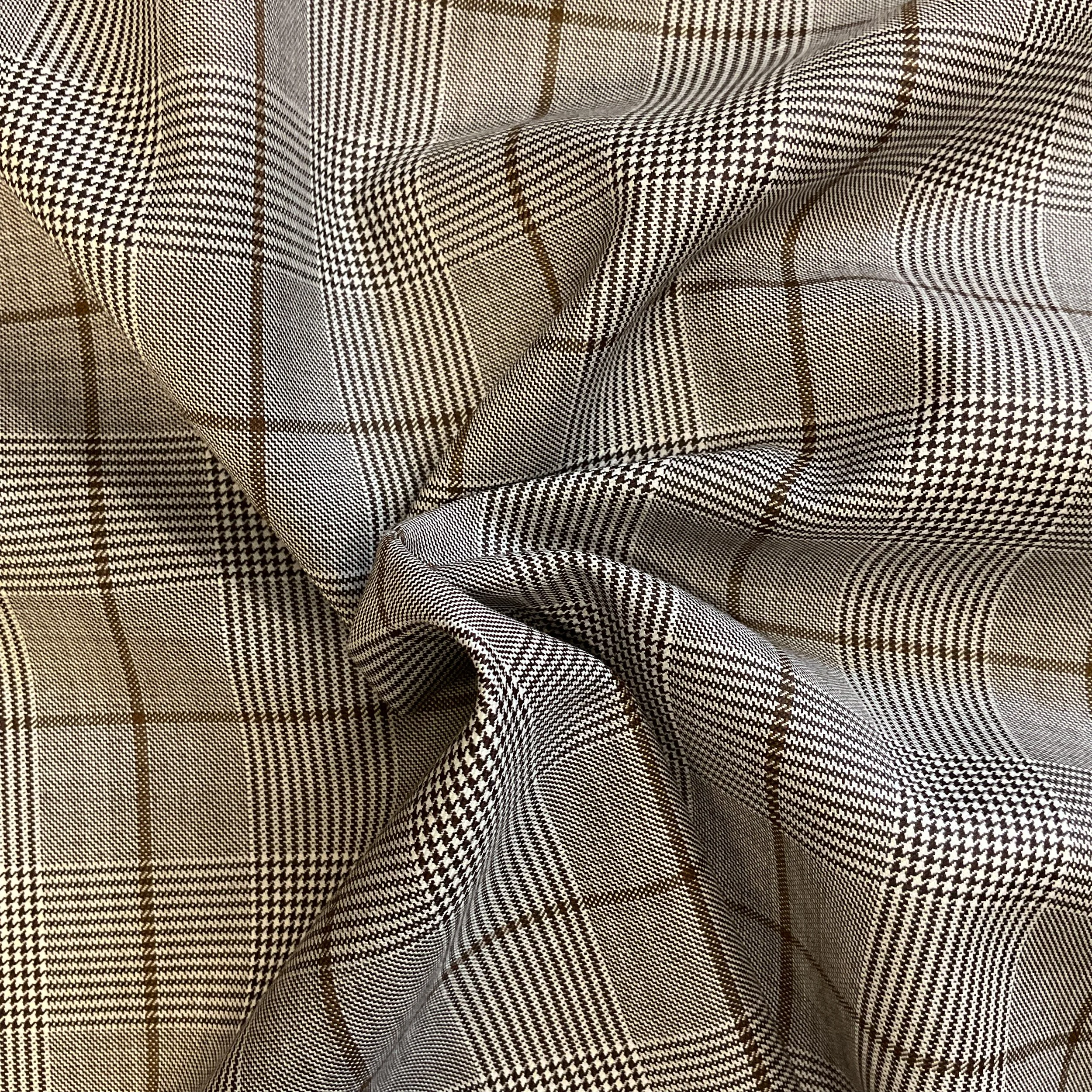 Brown w/ Subtle Red Window Pane Check Luxury Suiting Wool